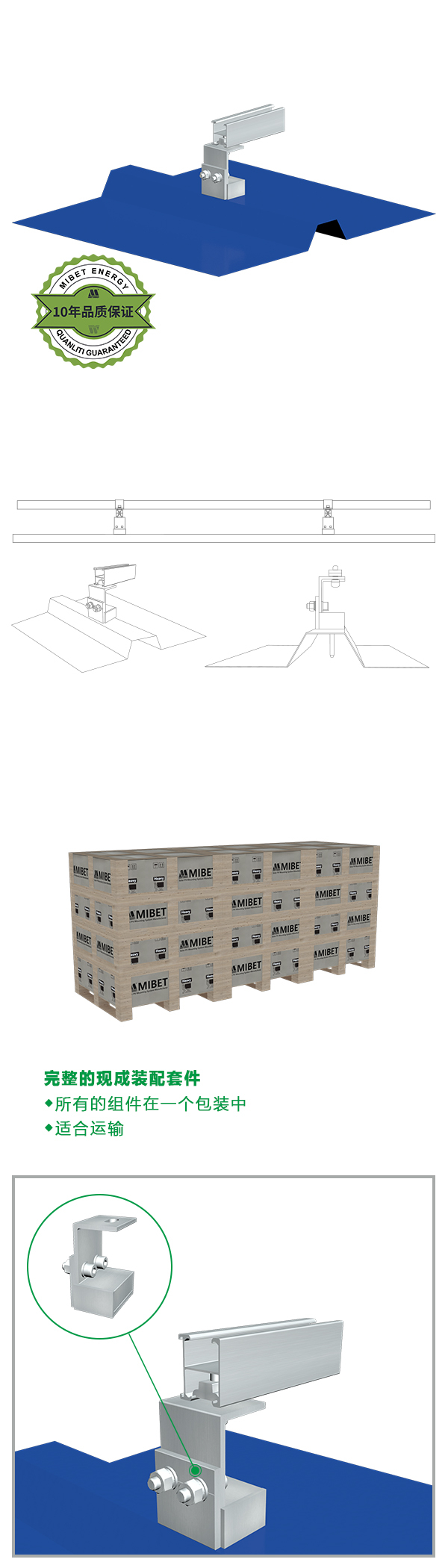 MRac 防水支撑座 主结构材质铝合金,通过专业的设计让支撑座与T形彩钢瓦的完美衔接,独特的防水结构设计让您不必因为安装而造成屋顶渗水的烦恼,实现您对安装和保护屋顶的要求。因地制宜的设计方案和优良的结构强度计算,帮您最大程度上降低工程的安装时间和安装成本,专利配件的独特设计,带给您更多的快捷安装体验。